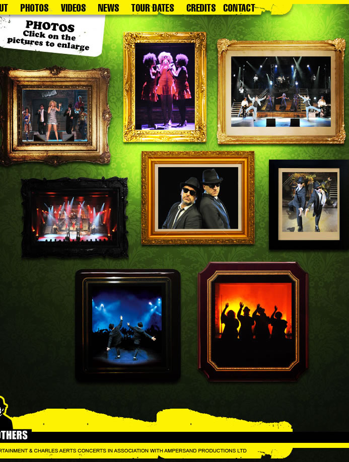 Website design for the Popular Blues Brothers Live on Stage Tour
